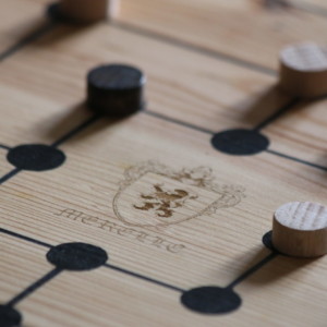 Le jeu de Merelle est un jeu médiéval qui se situe entre le jeu de dame et le morpion. Vous placer vos pions chacun votre tour, en début de partie, et essayer de former une ligne de 3 pions. Une fois tous les pions placé, vous les déplacer pour continuer à former une ligne de 3 pions (à chaque fois que vous faites une ligne, vous prenez un pion à l’adversaire).